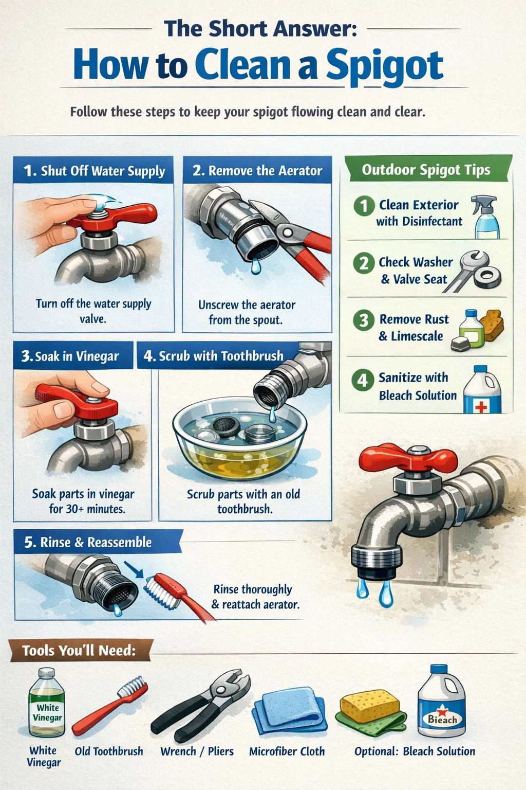 Ovaj vodič pokriva sve: alate koji su vam potrebni, kako očistiti različite vrste slavina, kako se nositi s tvrdokornim mineralnim naslagama, kako dezinficirati vanjske slavine i kako održavati svoju slavinu tako da traje duže.