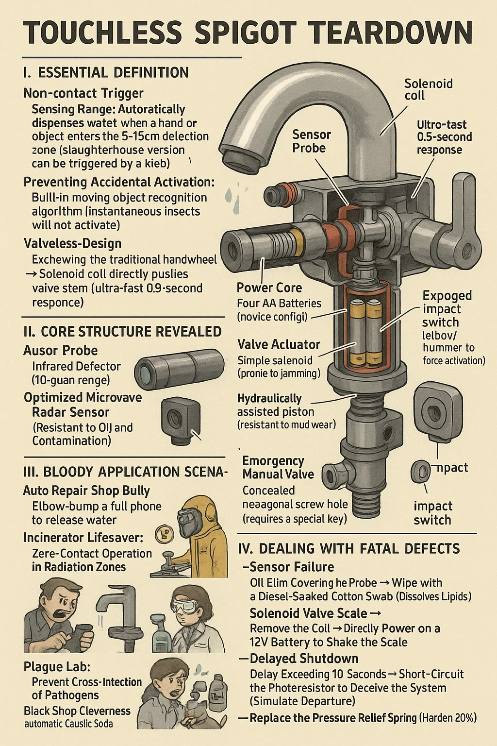 Osjetni raspon: Automatski raspoređuje vodu kada ruka ili objekt uđe u zonu otkrivanja 5-15 cm (verziju klaonice može pokrenuti udarac)