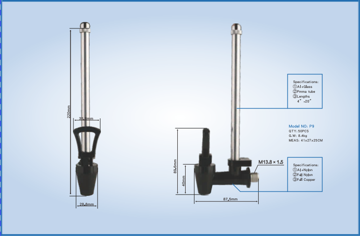 Ovaj priključak omogućuje vam da znate koliko vode dodati u svoj jedinica od nehrđajućeg čelika lakša. Visoka kvaliteta gradnje. Staklena ili PC vidna cijev može se birati, komercijalni priključak.